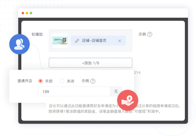 主商城后台开启邀请好友,并设置开店奖励金