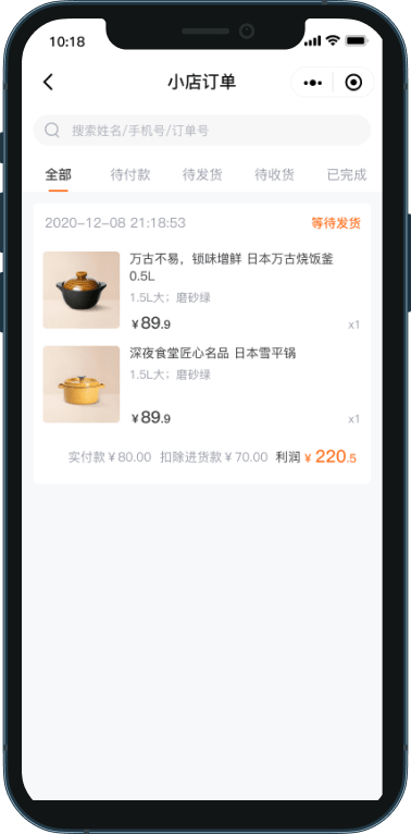 小店每笔订单所获利润=订单实付款(不含运费)-商品代理价格。