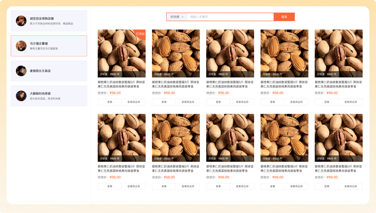平台搭建带货市场后,可入驻和管理供货商和带货商,帮助用户解决货源和推广问题。