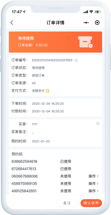 ·核销信息自动同步,方便客户查询核对
